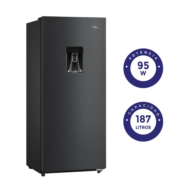 La Kalley K-N187L2GO de 187 litros en color gris está diseñada para ofrecerte practicidad y frescura todos los días. Cuenta con un dispensador de agua manual de 1.8 litros, removible y fácil de limpiar, además de control de temperatura ajustable para conservar tus alimentos en las mejores condiciones. Incluye un compartimiento extra frío, bandeja para vegetales y rejillas de vidrio removibles, que te permiten organizar el espacio a tu manera. También dispone de compartimientos especiales para botellas, optimizando cada rincón de la nevera. Con 1 año de garantía en la unidad y 5 años en el compresor, tendrás la tranquilidad y confianza que buscas. ¡Hazla parte de tu hogar hoy mismo!
